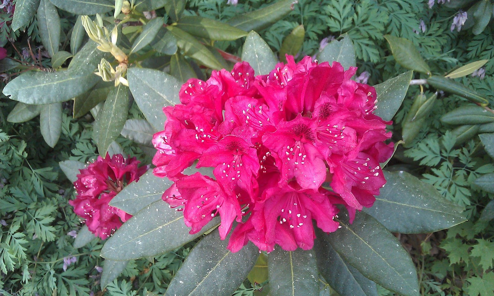 | Rhododendronen som står bredvid pionen är också fin faktiskt. Jag gillar färgen. |
